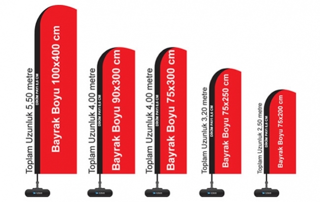 Bayrak Boyu 100×400 cm. – Direk Boyu 5.20 m. – Bidon 32 Lt.